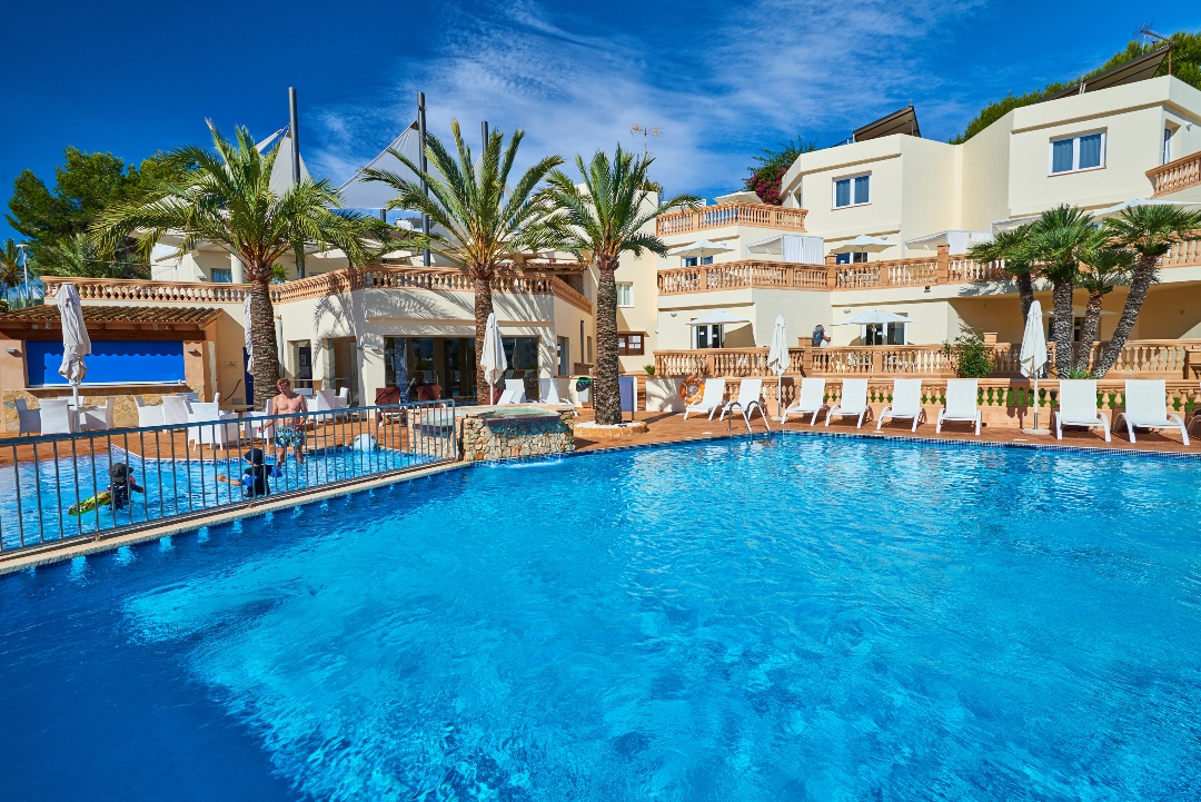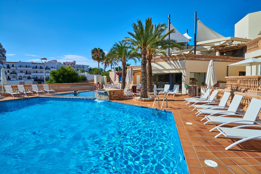 The swimming pool at Azul Playa Apartments is the perfect place to relax, sunbathe and cool off. Our pool has a shallow area for the little ones of the house, a large solarium and views of the beach of Cala Ferrera.